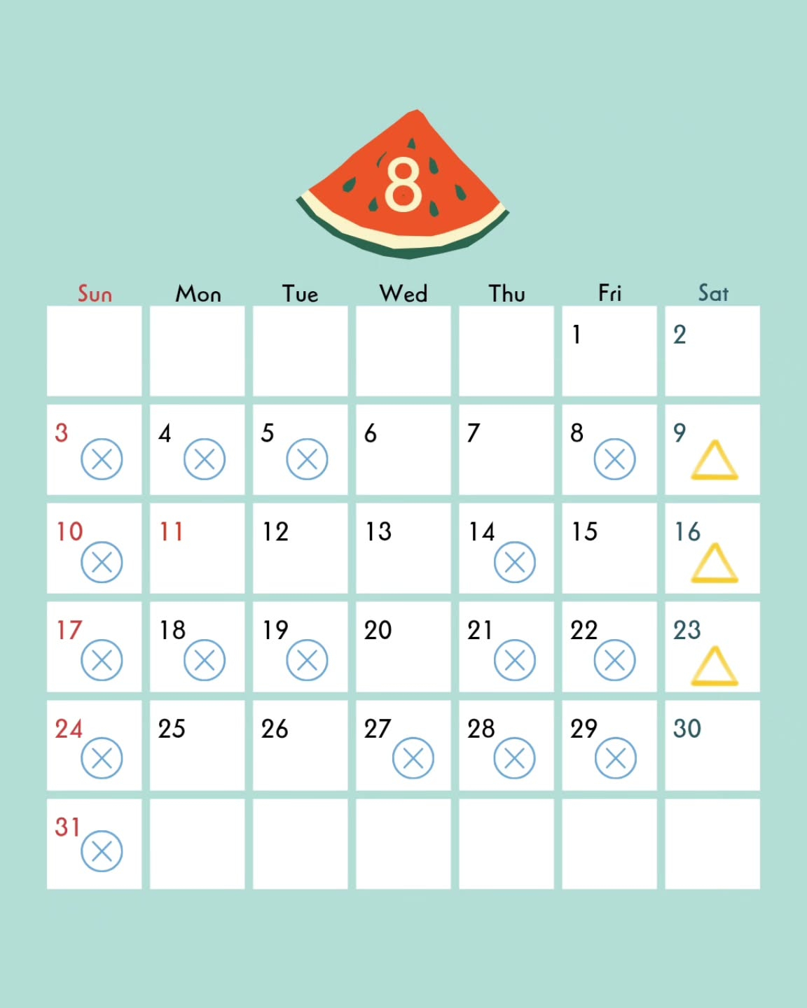 8月の定休日についてです。